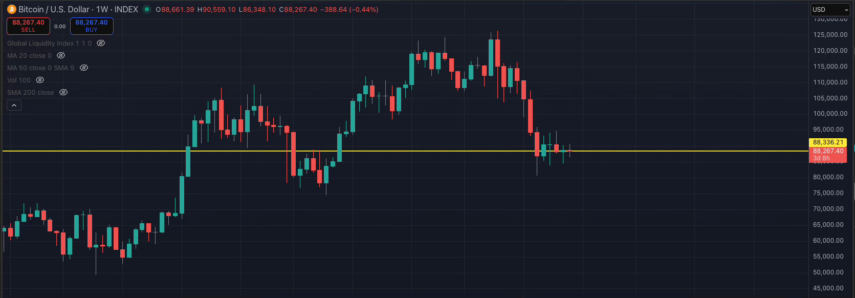 Since I plan to share my portfolio performance publicly on Substack going forward, I will track performance starting from this first post. As of today, the portfolio is fully allocated to BTC, with an entry price of $88,336.