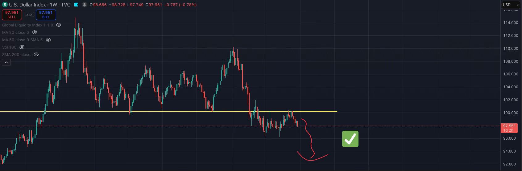 Since January 2025, the DXY has been in a downtrend. In April, it broke below a key support level near 100 and has since been trading within a range between 96 and 102.